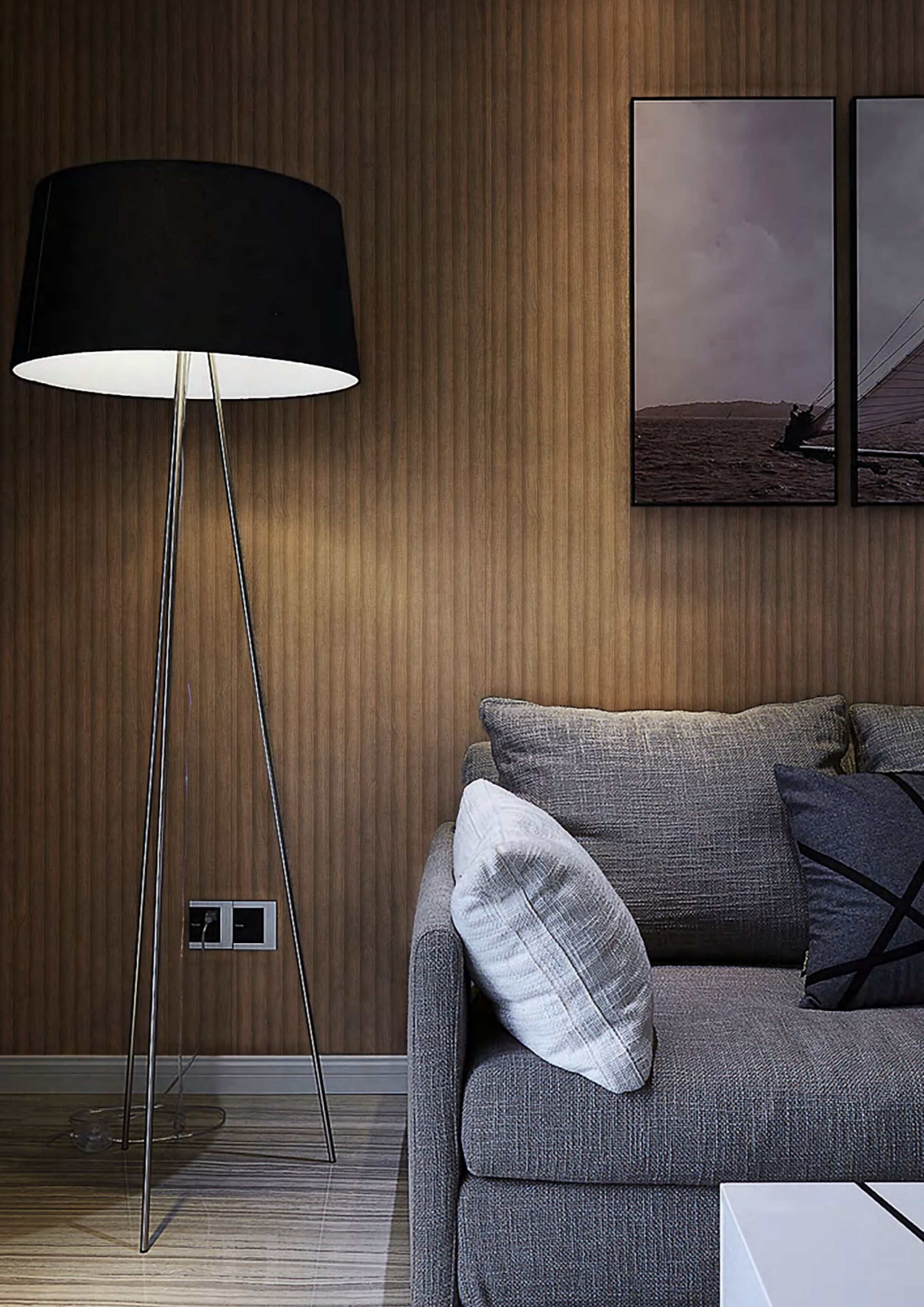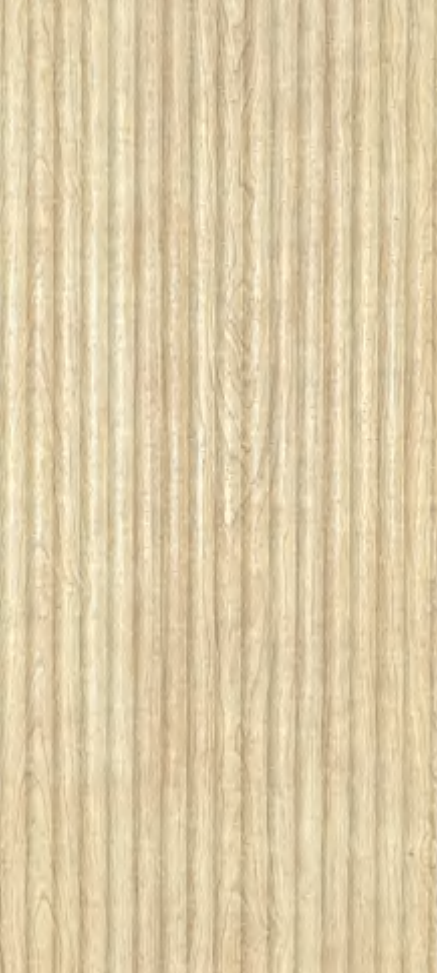 Inspired by raw wood textures, available in Light Yellow, Yellow, Light Brown, and Dark Brown. Crafted from pressed aromatic wood with 20mm ripple patterns for flat/curved surfaces. Combines rustic charm with modern durability.