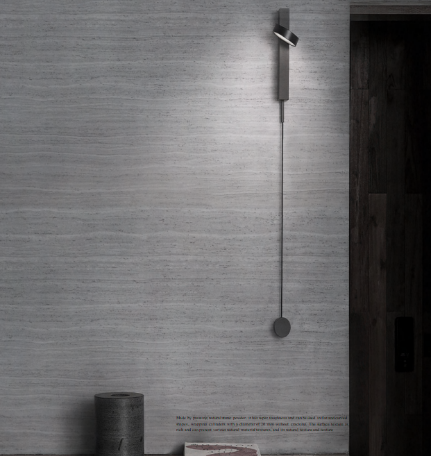 Authentic travertine textures crafted with natural stone powder, featuring warm Red/Grey/Brown/White tones and wood-grain variations. Lightweight (3mm) yet durable, ideal for accent walls, flooring, and architectural details in residential/commercial projects.
