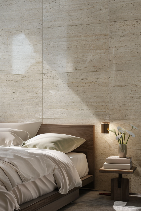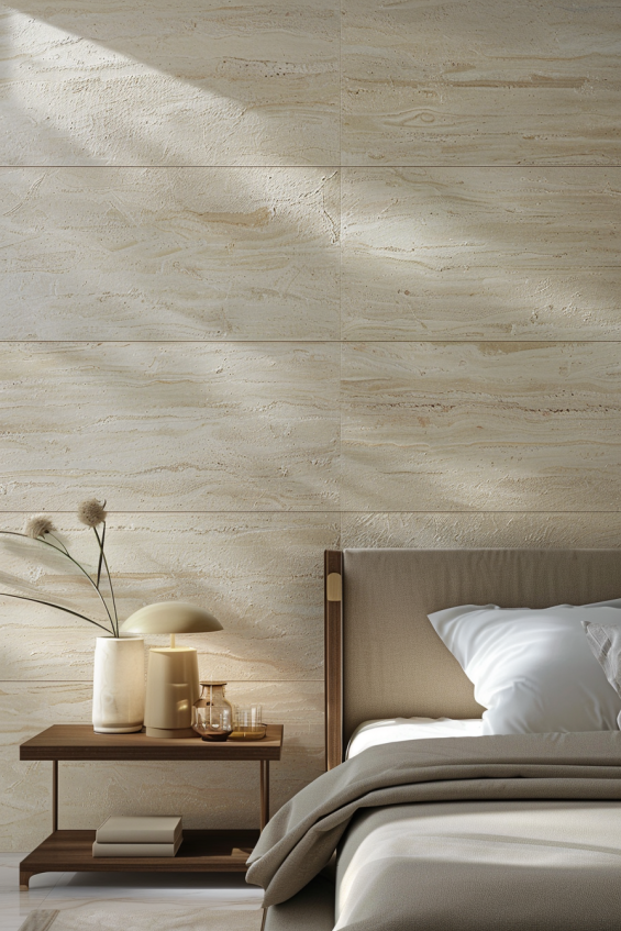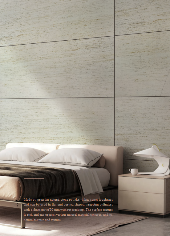 This “Roman Huge Travertine” finish captures the timeless elegance of natural travertine with its delicate linear textures and soft, earthy tones. Made from pure soft stone, it is lightweight, durable, and easy to install—perfect for creating a sophisticated and classic ambiance in any interior space.