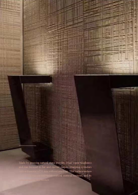 This “Sawing Wood Board” finish mimics the raw, textured grain of hand-sawn wood, adding a rustic yet modern appeal to any space. Made from pure soft stone, it is lightweight, durable, and easy to install—ideal for creating warm, sophisticated interiors with a natural touch.