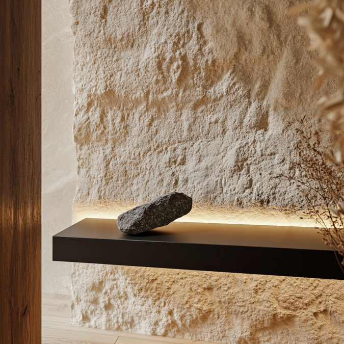 This “Starmoon Stone” finish showcases a rugged, natural texture that mimics the raw beauty of moonlit rock formations. Made from pure soft stone, it is lightweight, durable, and easy to install—ideal for adding depth and an organic, earthy charm to interior spaces.